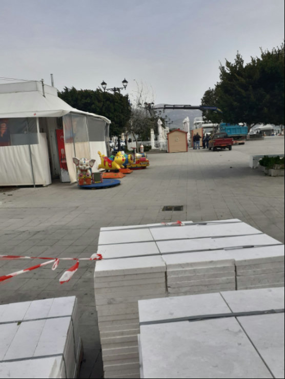 Καλούμε τη Δημοτική Αρχή, έστω και τώρα (και τουλάχιστον για όσο οι καιρικές συνθήκες καθιστούν τα ακατάλληλα φωτιστικά "ωρολογιακές βόμβες"), να αναλάβει την ευθύνη της και να λάβει όλα τα απαραίτητα μέτρα ασφαλείας, προβαίνοντας σε άμεση οριοθέτηση των ζωνών κινδύνου στην πλατεία. Οφείλει να εγγυηθεί την ασφαλή διέλευση των πολιτών και την προστασία των εργαζομένων (ΤΑΧΙ) και των δραστηριοτήτων τους, πριν θρηνήσουμε θύματα.