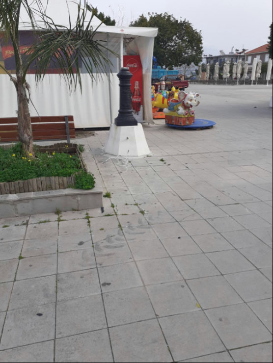 Εικόνα 2 Ο φανοστάτης που κατέρρευσε λόγω θυελλωδών ανέμων (έναντι Alpha Bank)