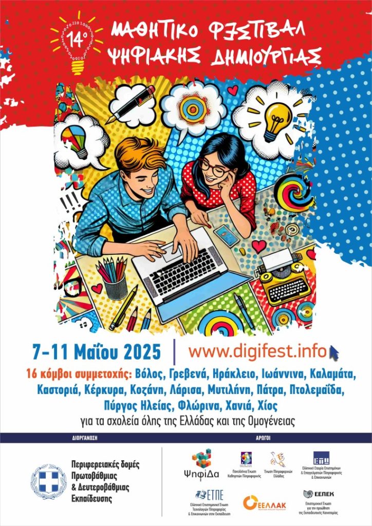 Το 14ο Μαθητικό Φεστιβάλ Ψηφιακής Δημιουργίας επιστρέφει στην Κέρκυρα στις 8 & 9 Μαΐου 2025, φιλοξενώντας μαθητές από όλη την Περιφέρεια των Ιονίων Νήσων.