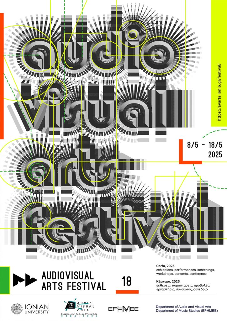 Το Φεστιβάλ Οπτικοακουστικών Τεχνών (AVfest) επιστρέφει για 18η χρονιά (8-18/5), φέρνοντας στην Κέρκυρα ένα δυναμικό μείγμα σύγχρονης ηχητικής και εικαστικής τέχνης. Διοργανώνεται από το Τμήμα Τεχνών Ήχου & Εικόνας σε συνεργασία με το Εργαστήριο ΕΡΗΜΕΕ του Τμήματος Μουσικών Σπουδών του Ιονίου Πανεπιστημίου.